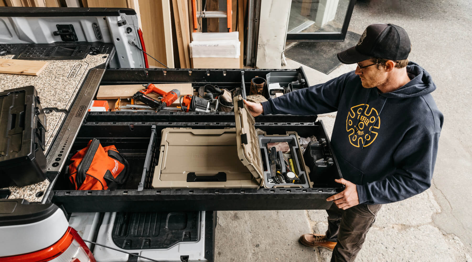Out of sight and out of mind. With your tailgate locked, drawers are inaccessible. Add an optional keyed lockset for complete peace of mind.